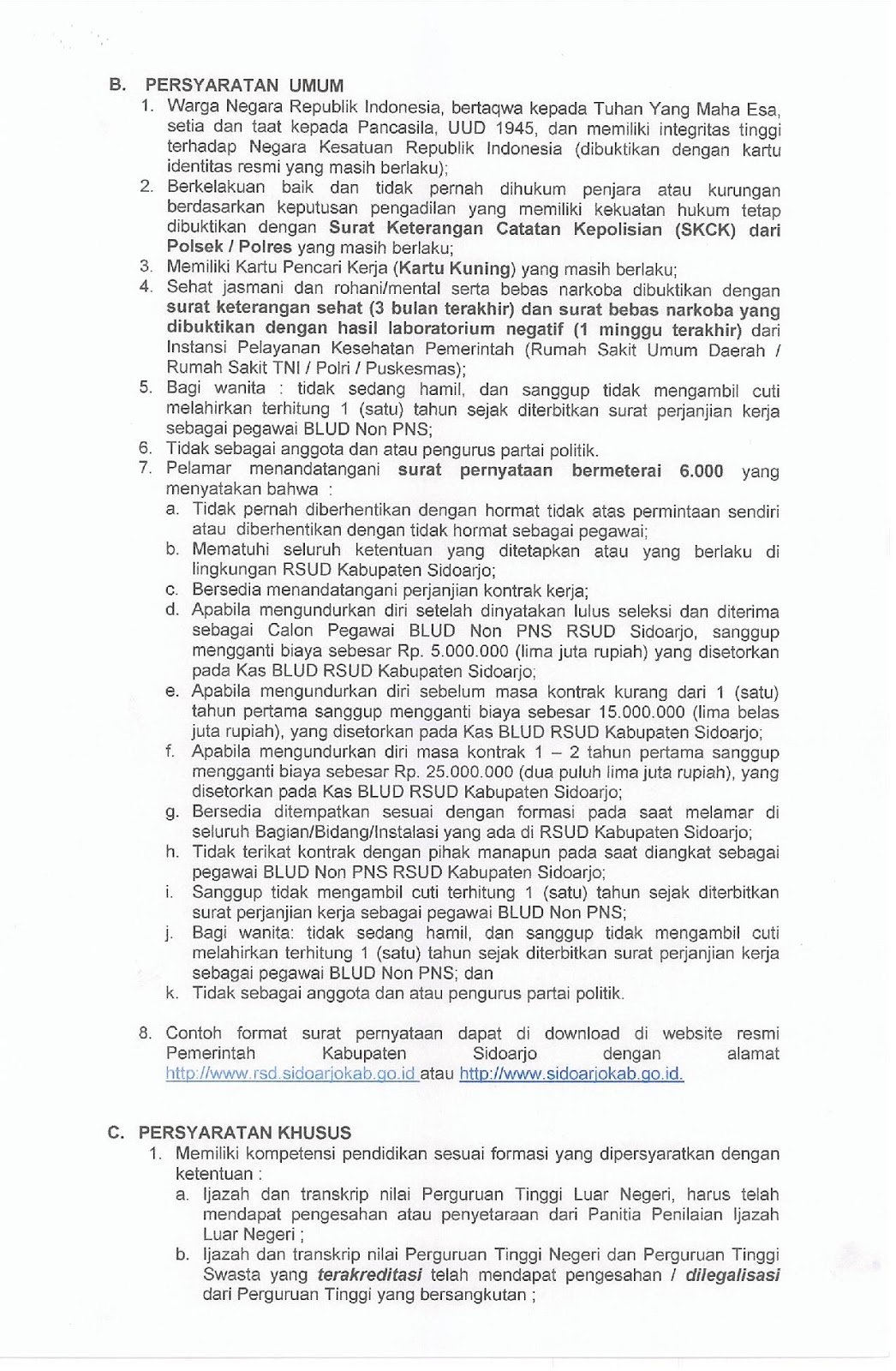 Rsud kabupaten sidoarjo kembali membuka lowongan kerja bidang kesehatan untuk mengisi pegawai blud non pns dengan formasi sebagai berikut tidak terikat kontrak dengan pihak manapun pada saat diangkat sebagai pegawai blud non pns rsud kabupaten sidoarjo.